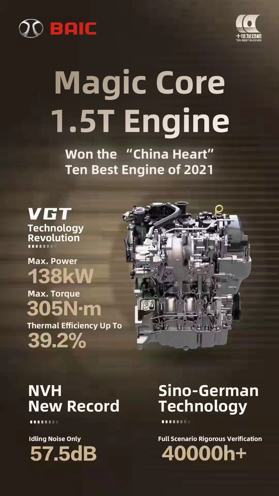 “With extraordinary technical indicators, BAIC magic core 1.5T engine demonstrates BAIC’s powerful R&D strength, and marks BAIC’s next-generation engine breaks into the best ones in the industry.”