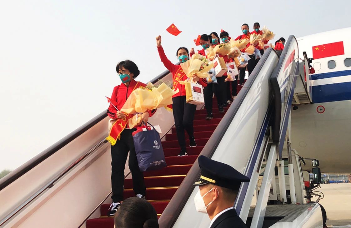 北京市援鄂医疗队自紧急受命支援武汉以来,全体医疗队员不忘初心、牢记使命,以昂扬的斗志、奋发的精神,持续投入疫情防控斗争,一战到底、全胜而归,向武汉人民交出了一份合格的答卷。医疗队荣获全国新冠肺炎防控先进集体,2名队员荣获先进个人。今日归来,看到阔别的家人和同事,很多队员落下了热泪。