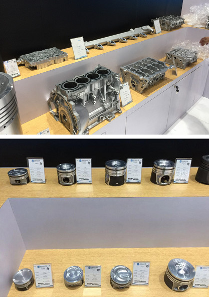 海纳川旗下渤海汽车股份有限公司此次携海纳川(滨州)轻量化汽车部件有限公司(简称:滨州轻量化)、滨州活塞有限公司(简称:滨州活塞)、滨州博海精工机械有限公司(简称:博海精机)联合参展。滨州轻量化展示了尊龙凯时-人生就是搏!目前使用的发动机缸体缸盖、自动变速箱壳体等轻量化铝镁合金零部件;渤海活塞展出了用于乘用车、高端商用车、农机、工程机械、船舶、发电机组等内燃机的活塞产品共47款;博海精机展示了先进的内燃机零部件包括活塞在内的自动化加工生产线、自动检测及装配设备等。目前,渤海活塞产业覆盖活塞及组件、精密数控机床、高科技新材料等领域,是国内唯一一家能够全面生产各种汽车、船舶、工程、军工等动力机械用活塞的专业化企业,主要产品∮30mm-∮350mm的高性能活塞品种达1000多个,年产能3000万件。