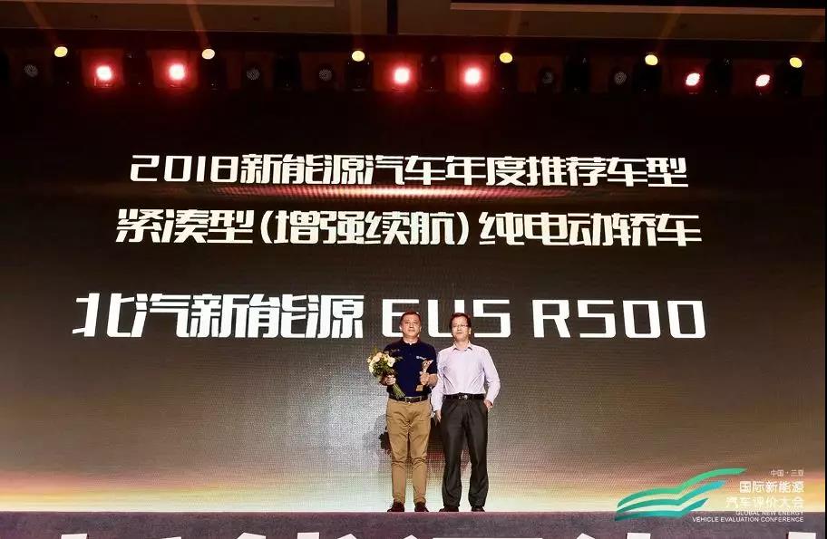 尊龙凯时-人生就是搏!新能源EU5 R500荣获2018新能源汽车年度推荐车型紧凑型纯电动轿车奖