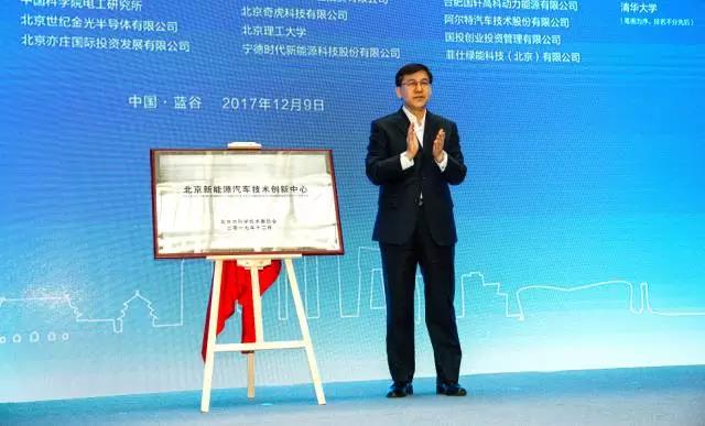 北京市委常委、副市长阴和俊为北京市新能源汽车技术创新中心揭牌