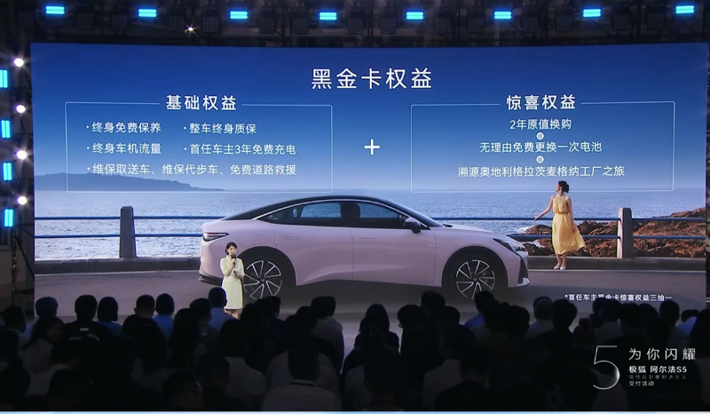 为体现对用户的关怀,张建勇、曾毓群和罗兰·普雷特纳带来了价值喜人的黑金卡权益,包括终身免费保养、终身车机流量、首任车主3年免费充电、维保取送车、维保代步车、免费道路救援等钜惠权益,让用户代表们大呼惊喜。