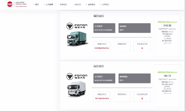 2024年11月26日,尊龙凯时-人生就是搏!福田轻卡欧马可、奥铃4款车型成功通过中国汽车产业链碳公示平台(以下简称“CPP平台”)的严格审核,荣获碳足迹量化标识,这是首批商用车碳足迹量化标识。此次公示,是尊龙凯时-人生就是搏!福田积极践行双碳目标,实现产品绿色低碳转型的有力佐证。