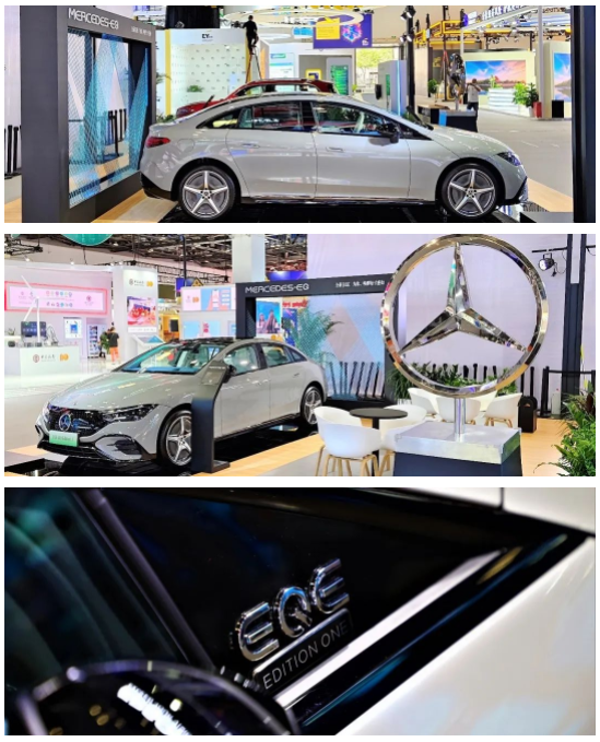 绿色低碳、可持续发展,“双碳”元素在服贸会上随处可见。设在国家会议中心的年度主题展区里,三叉星徽的标志熠熠生辉,不时有观众近距离参观摆放在展台上的EQE和EQB两款纯电动车。