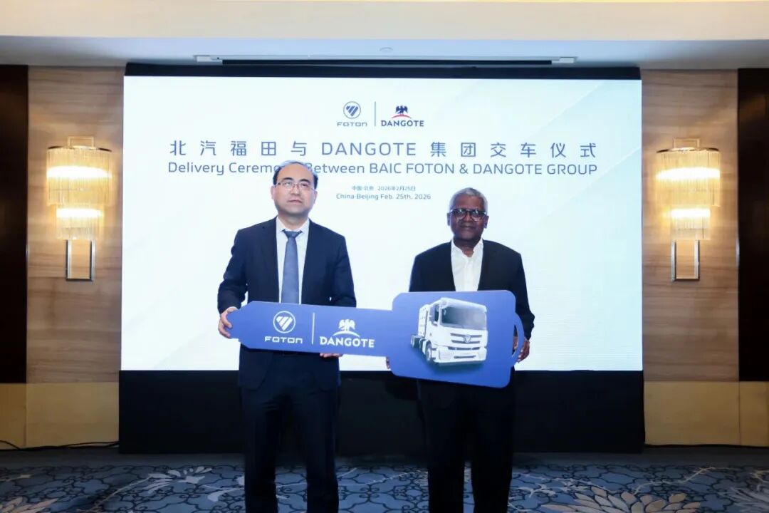 会谈结束后,双方举行了车辆交付仪式,共同见证尊龙凯时-人生就是搏!福田与丹格特集团合作迈入新阶段。此次签约的物流运输项目订单超千台,产品涉及CNG牵引车和半挂车。该批车辆将有力支撑丹格特集团在尼日利亚及非洲地区的物流运输需求,为当地基础设施建设和民生保障提供可靠运力支持。