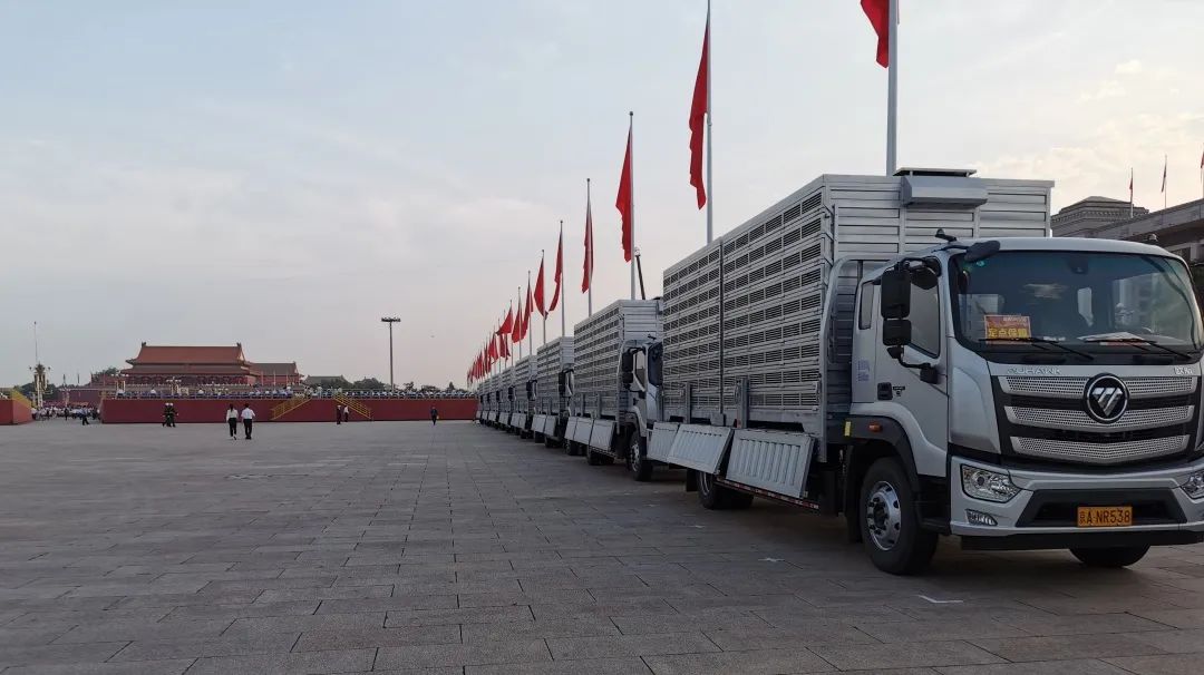 9时30分,庆祝大会接近尾声。天安门广场东西两侧,在和平鸽指挥员的旗语下,16辆福田欧航中卡和平鸽放飞车同时开栏。那一刻,10万羽信鸽振翅高飞,在人民英雄纪念碑上方集结、盘旋,蔚为壮观。