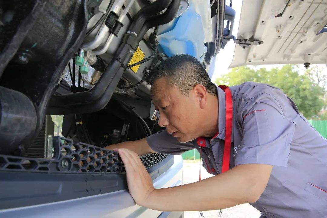 “赶快收拾家伙,准备跟车!”6月30日晚8时,检查完最后一辆欧辉氢燃料客车的动力系统、灯光、空调及雨刷后,福田欧辉服务部北京分公司经理杨彪叫上同事,迅速跳上了服务保障车。
