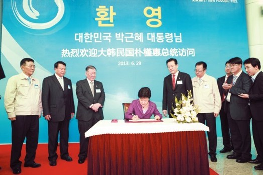 6月29日,在中国访问的韩国总统朴槿惠专程来到北京现代进行考察。她对北京现代所取得的成就给予了高度评价,期待在未来发展中,北京现代继续为中韩两国经贸关系的发展做出卓越贡献。